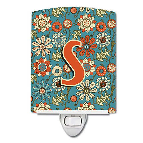 Caroline's Treasures Letter S Flowers Retro Blue Ceramic Night Light, 6 x 4", Multicolor