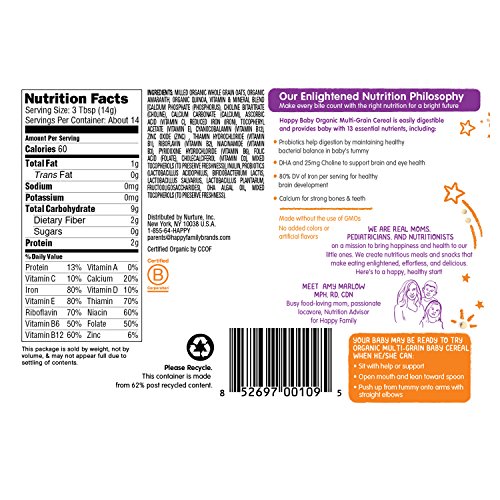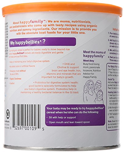 Happybaby bellies organic baby cereal with DHA choline and probiotics, multigrain, 7 ounce.