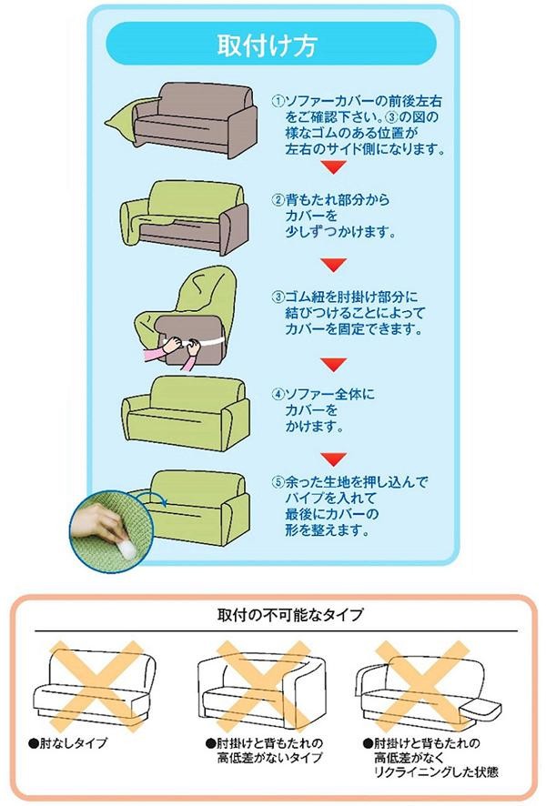 しっかり生地がストレッチするので取り付けもラクラク!!すべり止めのパイプ付きなのでカバーがずれる心配もありません。ちょっとしたお部屋の模様替えにもなるソファーカバーです♪ |