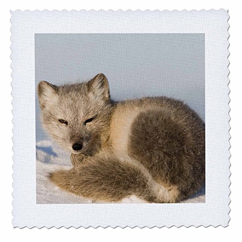 3dRose qs_87739_1 Alaska, 1002 Coastal Plain, ANWR, arctic fox - US02 SKA4943 - Steve Kazlowski - Quilt Square, 10 by 10-Inch