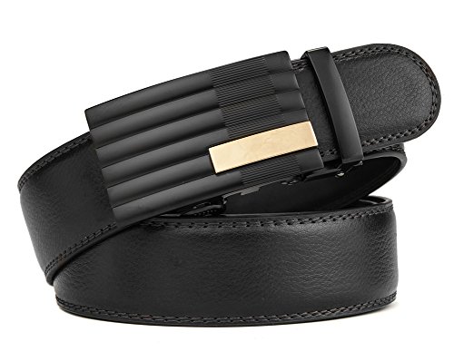 -. Title : Xhtang Men's Solid Buckle with Automatic Ratchet Leather Belt 35mm Wide 1 3/8"