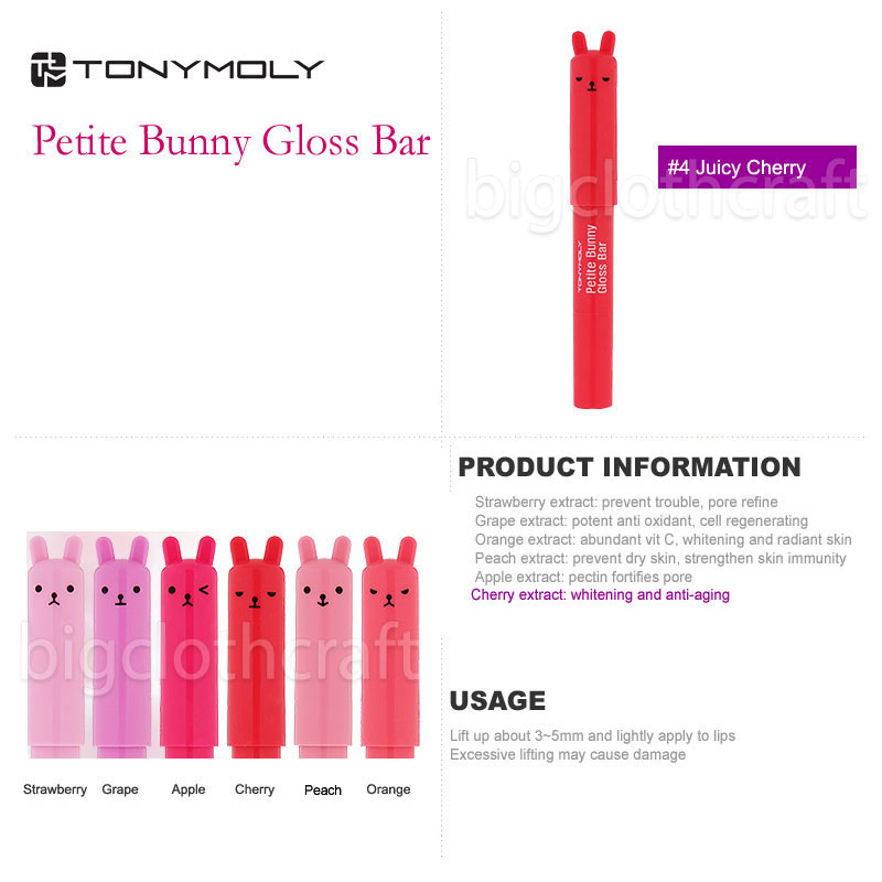 #4 Juicy Cherry Tonymoly Tony Moly Petite Bunny Lip Gloss Lipstick 2g
