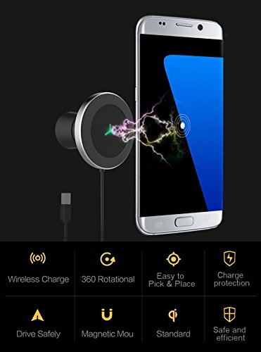 Luxury Magnetic Wireless Car Charger Mount, Qi Standard Mobile Cell Phone Air Vent And Dashboard Magnet Car Holder Cradle And Stand For Iphone 8 X Samsung Galaxy Note 8, S8 Plus and Qi Enabled Devices