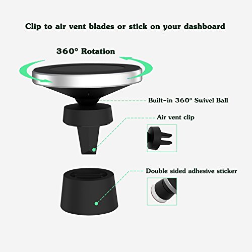 - MULTI-FUNCTION: Hands-free QI wireless charging and 2 in 1 magnetic car phone dock, which can be used on Air Vent or Dashboard wherever you like