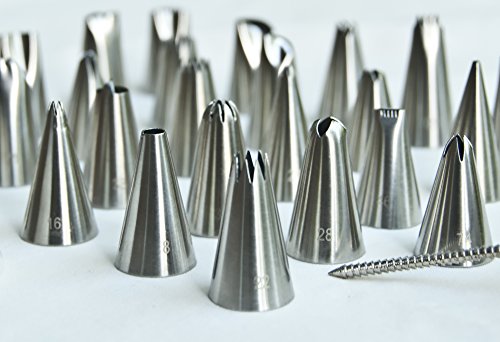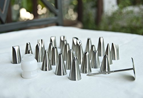 28-Piece Cake Decorating Tips Set By Sugar Heights - Kit Includes 26 Stainless Steel Icing Tips, 1 Reusable Coupler, 1 Flower Nail & Storage Case - Decorate Cakes, Cupcakes, Cookies and Desserts