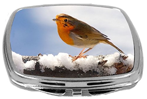 Rikki Knight Compact Mirror, Robin Bird In Winter