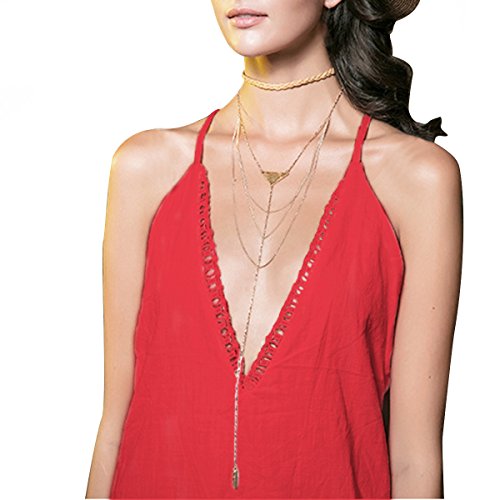 INDEPENDENCE DAY SALE!-Long Chain Multi Choker Plated Gold Necklace