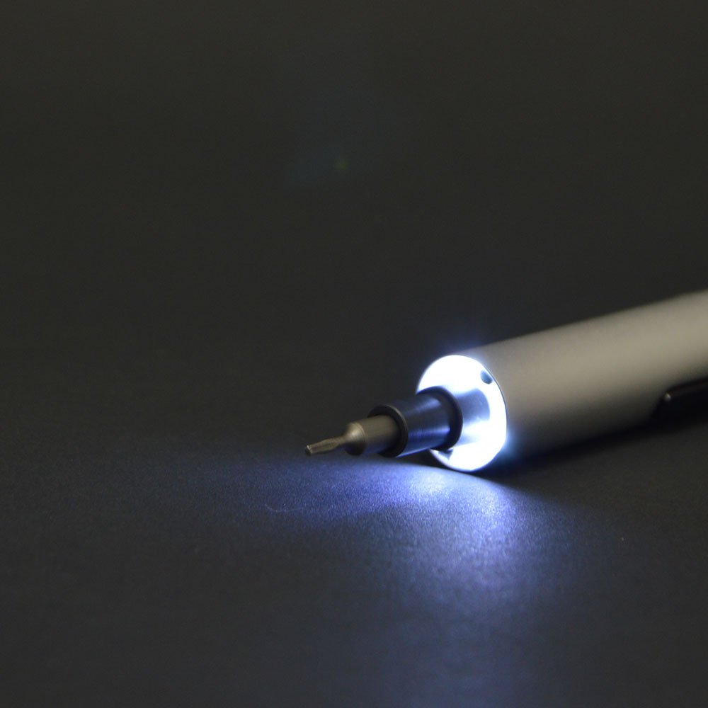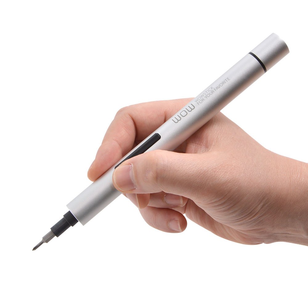 It is a cordless electric precision screwdriver that moves with two AAA batteries.