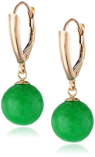 Yellow gold dangle earrings featuring spherical jade drops