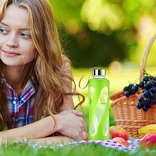 - Title : SWIG SAVVY Stylish Real Borosilicate 20-oz Glass Water Bottle with Silicone Sleeve - Stainless Steel Cap with Carrying Loop - Green