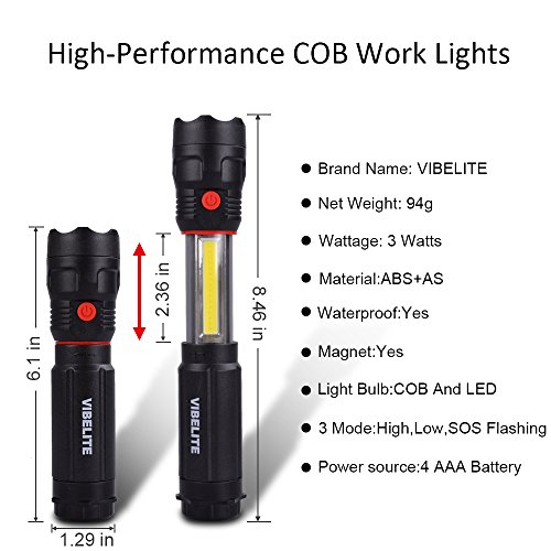 VIBELITE 250 Lumens LED Flashlight 120 Lumens Work Light