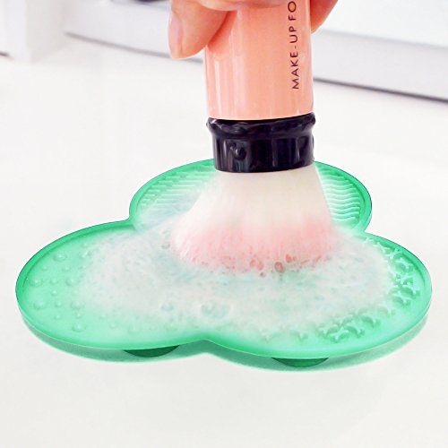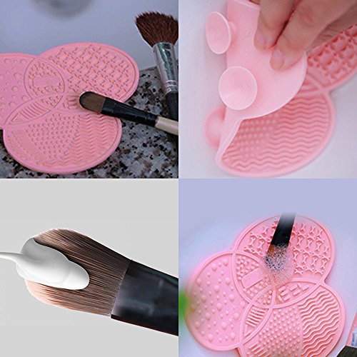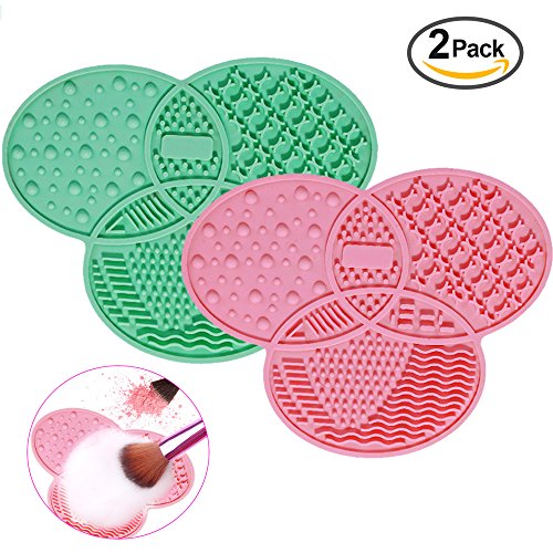 Bseen Makeup Brush Cleaning Mat - Set of 2 Silicone Cosmetic Brush Cleaner Pad Washing Tool with Suction Cup - Pink & Green