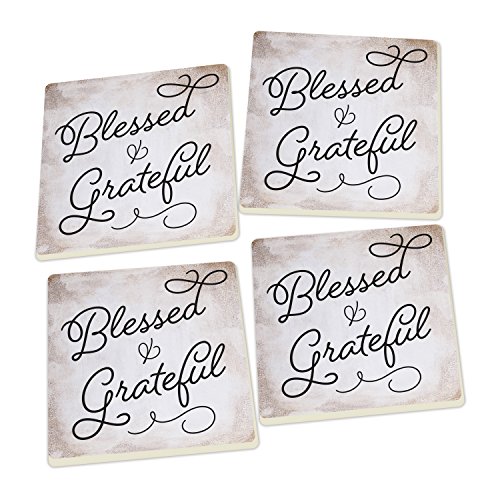 Blessed & Grateful Script Design Set of 4 Ceramic Coaster Pack