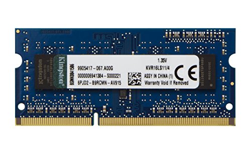 Kingston is the industry leader in PC memory. Kingston is your best source for system-specific memory. Product is backed by a lifetime warranty and free technical support. Included in the package is one 8GB module of select Intel Laptop Memory. Specs are 204-pin unbuffered Non-ECC Low Voltage SODIMM. Standard 1G X 64 Non-ECC 1600MHz 204-pin Unbuffered SODIMM (DDR3L, 1.35V, CL11, FBGA, Gold)Feature