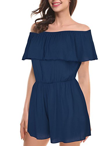 Style: Off shoulder Neck, Sleeveless, Elastic waist,Solid Jumpsuit