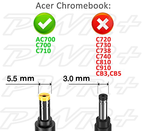 POWER SPECS : Output Max: 19V 2.1A 40W (30W Compatible) / Input Volt Range: 110-240V / Original Acer Charger Laptop AC Adapter Power Cord Replacement by PWR+ / Select Chromebook Models Only C710 AC700 !!!