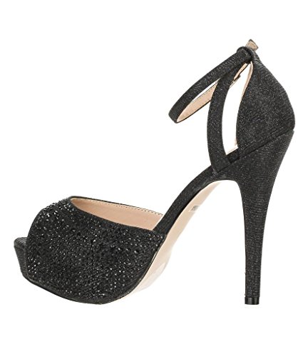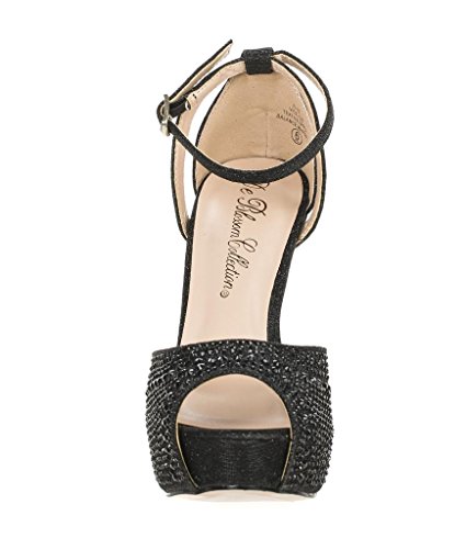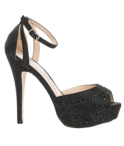 -. Feature : Heel: 5 inch / Embellished with Rhinestones and glitter / Peep toe / Adjustable ankle strap / Fits: True to Size