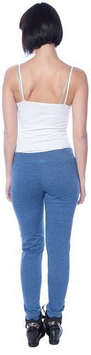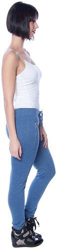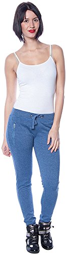 WOMENS ZIPPER POCKET DRAWSTRING JOGGER PANTS MED HEATHER DENIM