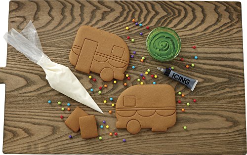 -. Feature : Includes: 3 pre-baked panels, mini multi-colored candies, white and green ready-to-use icing, black ready-to-use icing tube, decorating bag, cardboard base, and access to online decorating instructions / For best results, assemble camper 3 to 4 hours ahead of decorating to allow time to dry / Assembled camper measures approximately 6 in. wide x 2 in. deep x 5 in. high / Contains wheat. Made on equipment that also processes milk, egg and soy / Multi-colored candies made in China. Remainder of contents made in Canada