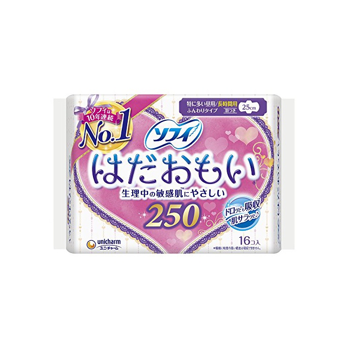 원본상품명: ソフィ はだおもい 250 特に多い日の?長時間用 羽つき 16コ入