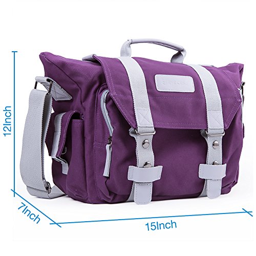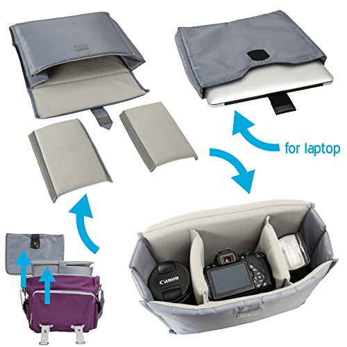 Easily transform this camera Laptop bag into a casual everyday messenger - simply remove 2 insert (one for laptop, one for DSLR) to create space for books, headphones and other daily essentials. Package includes: Canvas Camera Bag with shoulder Strap, Raincover