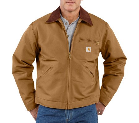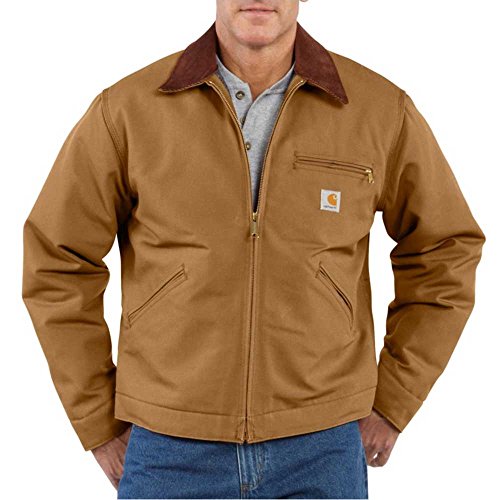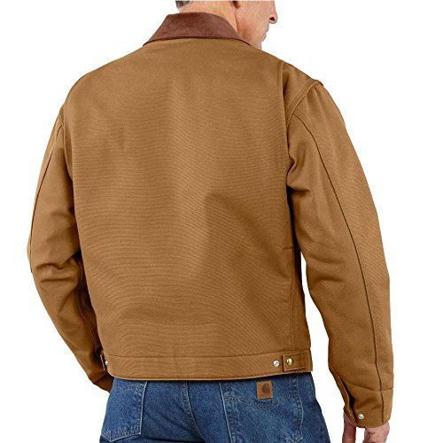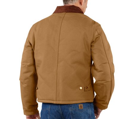 Studio : Carhartt Sportswear - Mens Publisher : Carhartt Sportswear - Mens Binding : Apparel Product Description One hard-working garment, our duck Detroit jacket is constructed of rugged 12-ounce, 100% cotton duck, and features a blanket lining in the body and quilted nylon lining in the sleeves. There’s a corduroy top collar with under-collar snaps to attach an optional hood. Inside, there’s a welt pocket and outside there are two large front pockets and a zippered left-chest pocket. The waist and cuffs are snap adjustable, and the bi-swing back makes for easier movement. 0