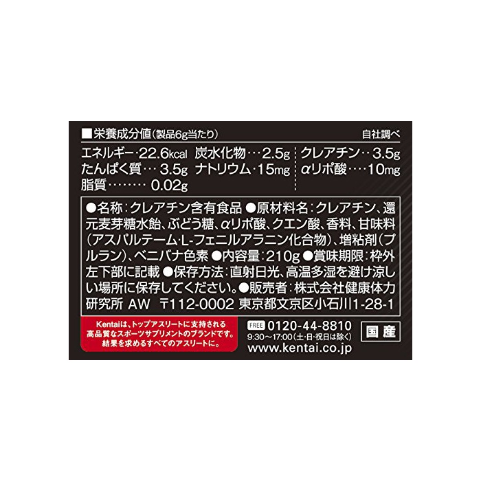원재료 : 클레어 친,환원 맥아당 수 엿,포도당,α리포산,구연산,향료,감미료(아스 PAL《데무》L-회《니루아라닌》화합물)고, 증점제(Pull 런)고, 잇꽃(붉은 꽃) 색소