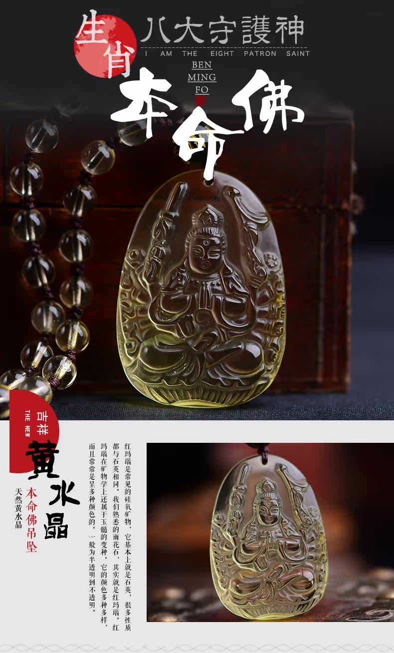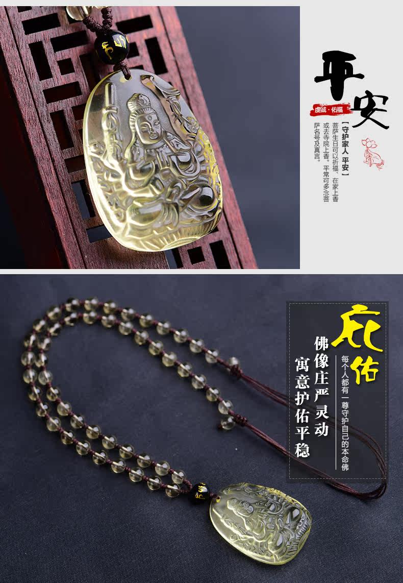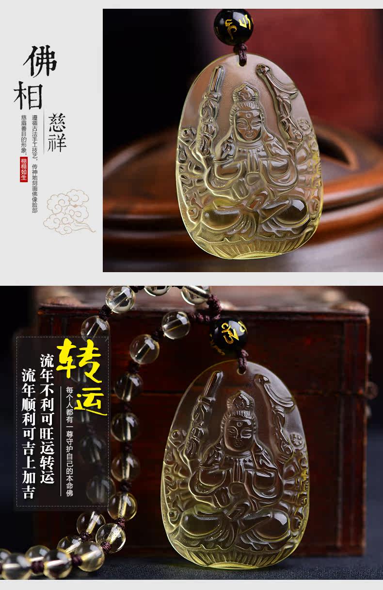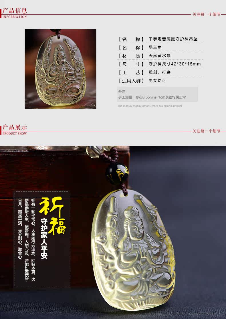 开光天然黄水晶千手观音菩萨吊坠生肖鼠守护神本命佛男女项链挂件