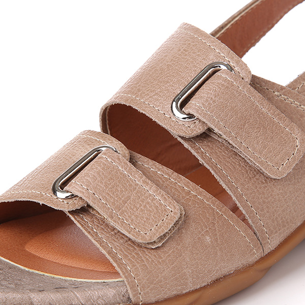 고급 소가죽을 사용한 벨크로 투밴드 샌들