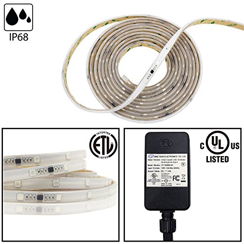 - Ultra bright ETL listed 5050 SMD strip light, 150 3-IN-1 RGB multi-color LEDs in 16.4ft, totally covered with silicone glue IP68 waterproof rating