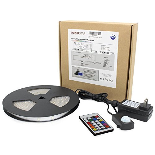 TORCHSTAR IP68 Waterproof Dreamy LED Strip Light Kit, 16.4ft/5M ETL listed RGB Color Chasing Flexible LED Tape Light w/24-key Remote Controller, UL listed Adapter for Indoor/Outdoor, Cove, Deck light