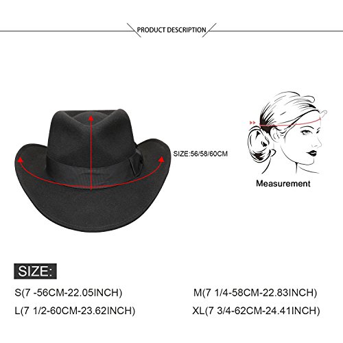 ★★ Simple Stylish Classic - Wool Cowboy Hat for Women Men which makes a great gift ★★ Perfect for western theme parties,date nights, afternoons at the park, picnics, the complete buckaroo costume or just letting your inner cowgirl /cowboy shine.Perfect fashionable accessory that can be worn throughout all seasons and various special occasions ★★ Cowboy hats are made of 100% wool that boasts durable structure.These western hats have a classic yet contemporary style that exudes a timeless charm.A fashion inspiration Safari hat is the perfect accessory to compiete your clothes. ★★Protect yourself from wind, sun, and snow this season with a large 3 ½ inch brim