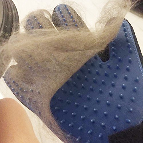 【Using Five Finger Deshedding Glove】 Put the five finger deshedding glove on and adjust hook and loop fastner. Gently run the five finger deshedding glove through your pet's coat. For best results, brush in the direction of fur growth. When you're done grooming simply lift the hair off of the grooming area of the glove. You may need to do this multiple times for heavy coats.