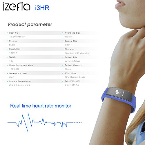 - Lightweight 20g quite convenient even wear it sleeping. Responsive 0.96'' OLED Touch Screen,slide/short touch/long touch 5 seconds, you can easily read the steps counting, heart rate, calories, time, date, messages, etc.