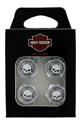Studio : Baron LFI Publisher : Baron LFI Product Description Harley-Davidson® Willie G. Skull Valve Stem Cap Covers. Chrome. Pack of 5. Features a white and black Willie G Skull logo. Will fit on all standard valve stems, includes all cars, trucks, SUV's or Harley motorcycles. Made to the specifications of the DOT 'Department of Transportation'. They will work with all vehicles that have tire pressure monitoring systems, standard in all vehicles 2007 or newer. 0