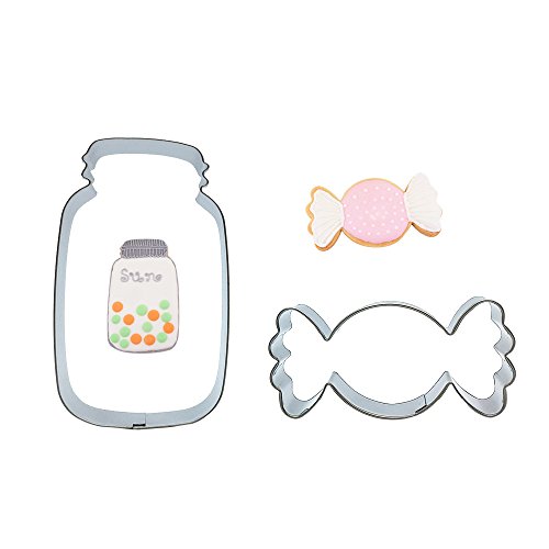 Cute Bottle and Candy Cookie Cutters Set Stainless Steel Metal Wrapped Fondant Cutter Cookie Molds, Pack of 2