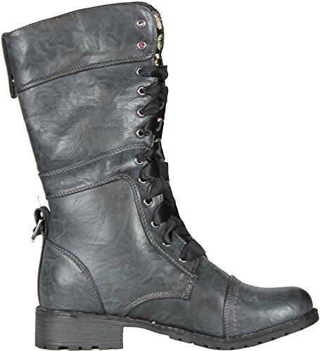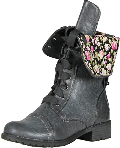 Wild Diva Lounge Timberly-43 Floral Cuff Lace Up Combat Boots