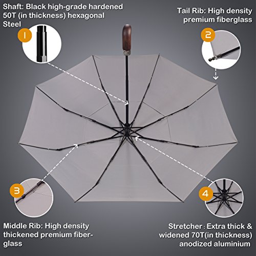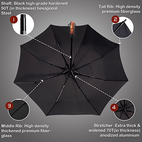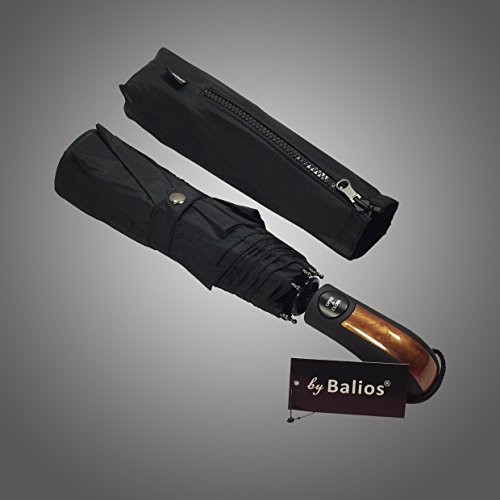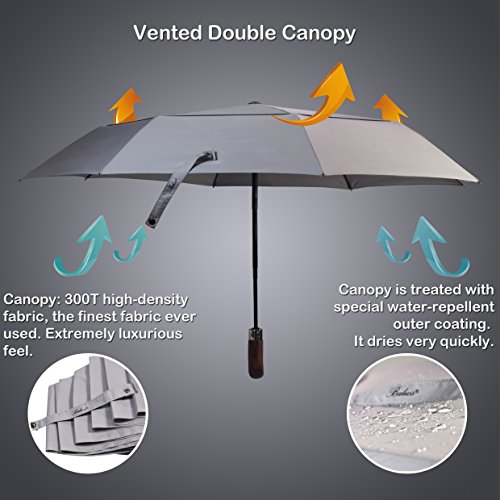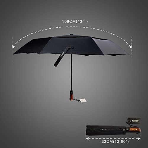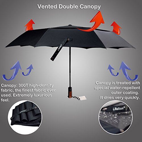 -. Title : Designed in UK-Balios Travel Double Canopy Folding Umbrella Premium Fiberglass Steel Auto Open &Close with 300T Finest Fabric-Vented Windproof-Ultra Comfort Handle-Men's&Ladies