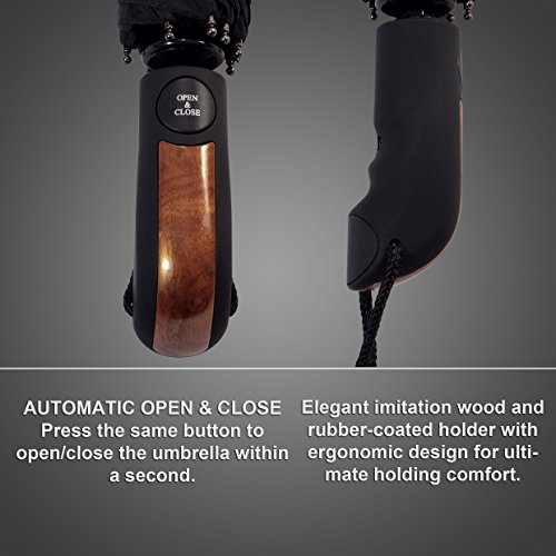 -. Feature : ►IMPROVED STURDY CONSTRUCTION + PURE AESTHETIC BEAUTY►-Aesthetically designed in the UK, Balios is all about authentic quality and contemporary aesthetic beauty. Our auto open & close umbrella has undergone a number of structural frame improvements in the past few months to make it more wind resilient. We offer ONE YEAR UNCONDITIONAL WARRANTY on our umbrellas, if the umbrella should fail to function properly for any reason during this period, we will gladly repair or replace it for FREE. / ►UNIQUELY STRONG FRAME WITH PREMIUM FIBERGLASS & HIGH GRADE STEEL►-As many as 146 painstaking steps and 12 points of inspection are used to produce a single Balios umbrella. The result is a product with durability, quality and great performance. Our unique frame is composed of high-grade steel and premium fiberglass. ►We use a black high grade hardened 50T (in thickness) steel as umbrella shaft (others use 30T to 40T steel or aluminium), creating a heavy duty foundation of rigidity and strength. / ► Each improved rib is reinforced with high-density thickened fiberglass ligaments (2.3mm & 4.2mm) to prevent breakage or rib distortion in strong winds. The ribs will bend and flex in windy conditions so not to easily break or invert, even if the canopy blows inside out during sudden gusts, it can be easily flipped back into position without damaging the frame. ►Thickened high grade steel is used as the top part of the frame for its great wind resilience. (Please refer to our product images.) / ►VENTED DOUBLE CANOPY & FINEST 300T WATER-REPELLENT FABRIC►--Our Balios® umbrella features VENTED DOUBLE CANOPY constructions which allows strong wind to vent between layers. ►The water-repellent canopy is constructed of 300 thread count per inch high-density fabric (the most tightly woven & the finest fabric ever used in any umbrellas) to offer maximum protection from precipitation. It is also treated with special water-repellent outer coating. Dries very quickly with luxurious feel. / ►3-ACTION FAST AUTO OPEN + CLOSE BUTTON & ANTI-SLIP HANDLE►-Press the button to open within a second. ONE SECOND ONE HAND OPERATION. ►Press the same button to CLOSE the canopy quickly and then push both ends towards the centre until it clicks to lock the umbrella. ►If the umbrella ever inverts, just press again and the ribs will automatically correct themselves to closed position. ►Our gorgeous handle features elegant imitation wood and rubber-coated holder with ergonomic anti-slip design.