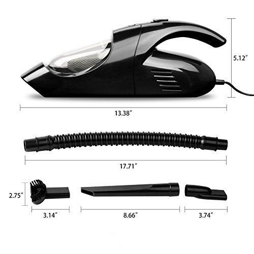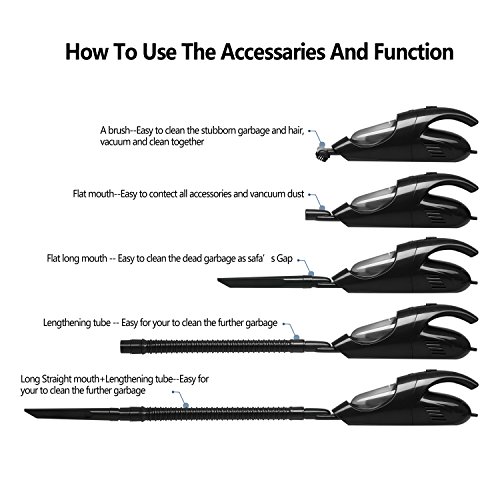 Impressive Car Vacuuming Performance: handheld car vacuum cleaner comes with superior suction capability. Useful for trucks, vans, pickups, mini buses and caravans. Comes with long tube and short brush. Handheld vacuuming unit can easily clean cramped spaces around car seats and armrest. Hair brush helps to clean dashboard