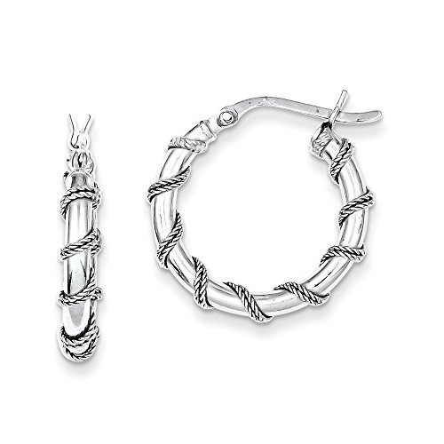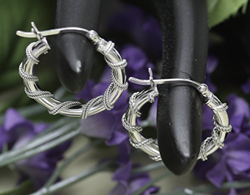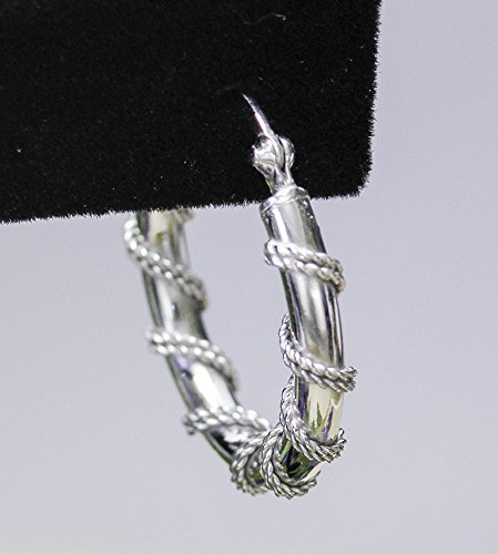 Brightly Polished 925 Sterling Silver Hoops have the Added Intrigue of Antiqued Twisted Wire Wrapping