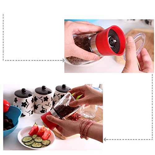 Salt and Pepper Grinder Set,KPACO Premium Slim Pepper Mill and Salt Mill,Salt and Pepper Shakers,Easy to Fill Salt and Pepper Mill Set With Brush - Red