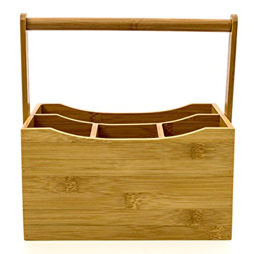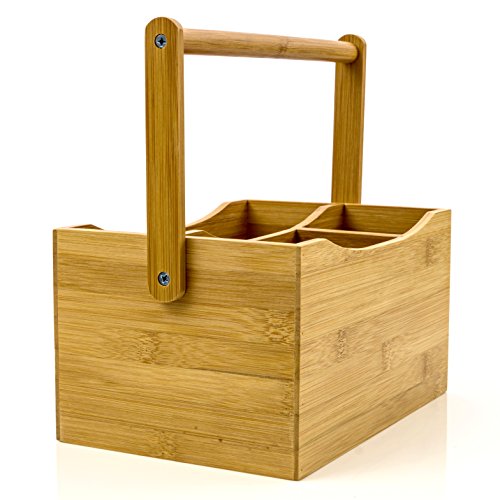 Cutlery Holder Flatware Caddy Silverware Caddy Tableware Tabletop Holder With Swing Handle Made of Organic Bamboo By Intriom Bamboo Collection