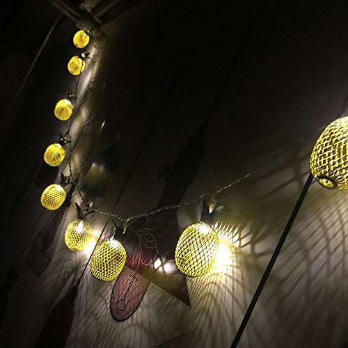Metal Mesh 10 mini Pineapple String Light Linpote Battery Powered LED Fairy Light for Bedroom Wall Birthday Party Decoration Warm White