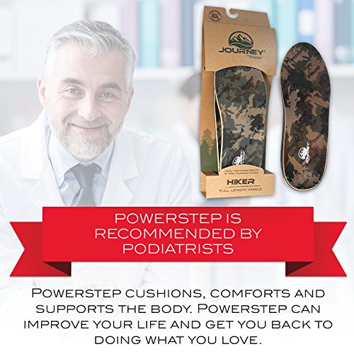 Studio : Powerstep Insoles Publisher : Powerstep Insoles Binding : Apparel Product Description For stability and cushioning during rigorous activity on rugged terrain, the Journey Hiker provides the comfort you need. With a firmer arch support, the Journey Hiker stabilizes your foot while also allowing for flexibility. This insole fits in most outdoor athletic shoes such as hiking, snow and ski boots and trail running shoes with no trimming necessary. Reduce fatigue and protect your feet on long trips with the Journey Hiker. Powerstep has been providing the highest-quality in orthotic shoe insoles since 1992, when our founder, a podiatrist, foot surgeon and runner, saw the need for a ready-to-wear orthotic that would be more convenient and more affordable than custom-made orthotics. Our products are found in retail stores throughout the country and are the leading brand of orthotic shoe insoles prescribed by a range of medical professionals. At Powerstep, we’re committed to continuing to produce the best in orthotic shoe insoles to help reduce foot pain. 0