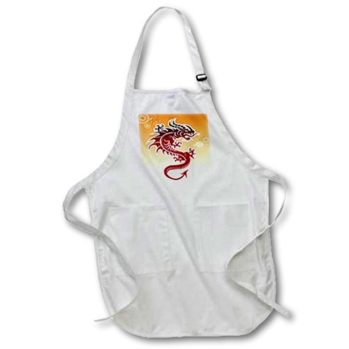 3dRose apr_62464_2 Asian Dark Red Dragon on Orangy Background-Medium Length Apron with Pouch Pockets, 22 by 24-Inch