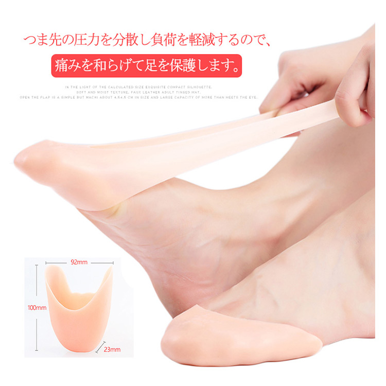 | つま先の圧力を分散し負荷を軽減するので、痛みを和らげて足を保護します。シリコンを採用され、柔らかいで伸縮性が抜群、しっかりつま先を守ってくれます。つま先全部を優しく包み込み、つま先の痛み解消やくつ下の破れ防止に素晴らしい効果があるのです。バレエだけでなく、ダンサー、サッカー選手、ランナーと他の選手のための完璧な、つま先を保護します。 | |