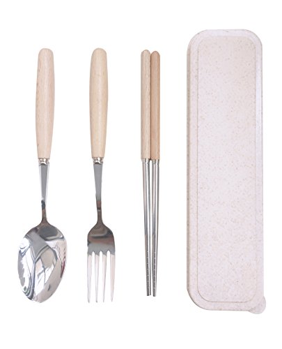 CHQ Wooden Handle Stainless Steel Cutlery Set with Travel Box H044 (3 piece suit)