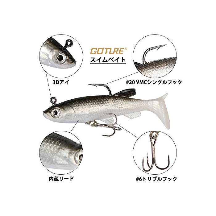 원본상품명: Goture(ゴチュ?ル) スイムベイト ワ?ム ルア? 釣り 仕掛け 餌 魚 ?流 投げ釣り 初心者 ソフトルア? 5個セット 85mm 16g