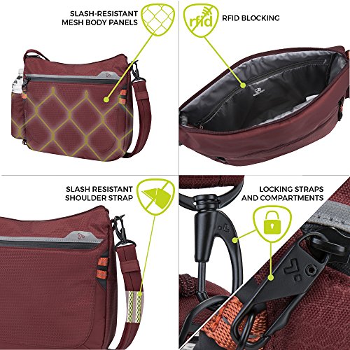 -. Binding : Apparel -. Brand : Travelon -. Color : Multi -. Department : womens -. Feature : Top zip closure / Adjustable crossbody strap with a drop length 13"- 25" / Roomy main compartment with RFID blocking zippered pocket, 2 open top wall pockets, and a pen loop / Tethered key clip with LED light / Front and rear zippered pockets -. Label : Travelon -. Manufacturer : Travelon -. NumberOfItems : 1 -. PackageQuantity : 1 -. ProductGroup : Lage -. ProductTypeName : LAGE -. Publisher : Travelon -. Studio : Travelon -. Title : Travelon Anti-Theft Active Medium Crossbody Messenger Bag